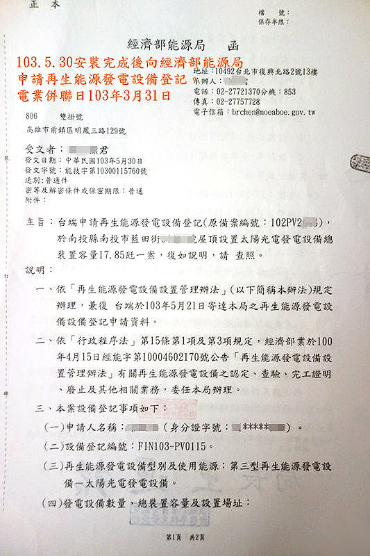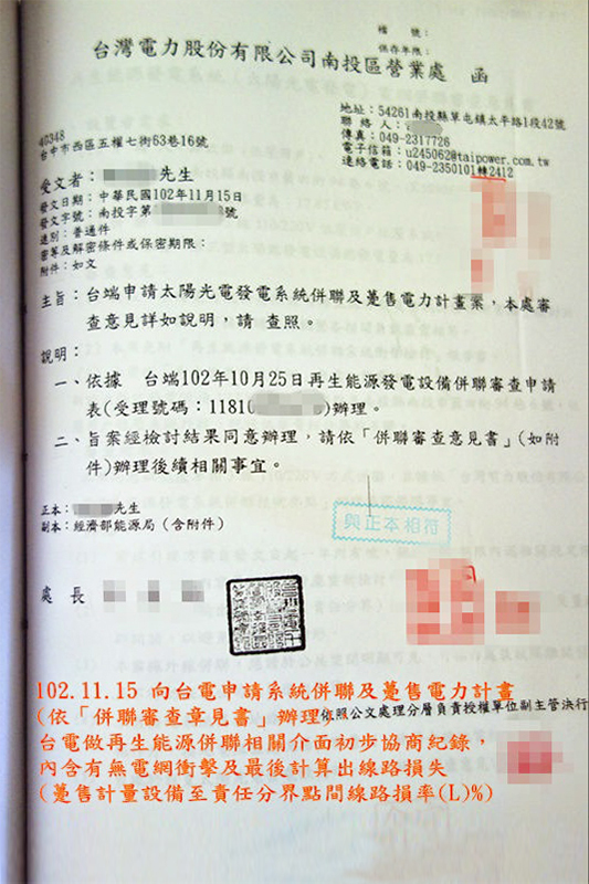 辦理臺(tái)電簽約及併聯(lián)試運(yùn)轉(zhuǎn)